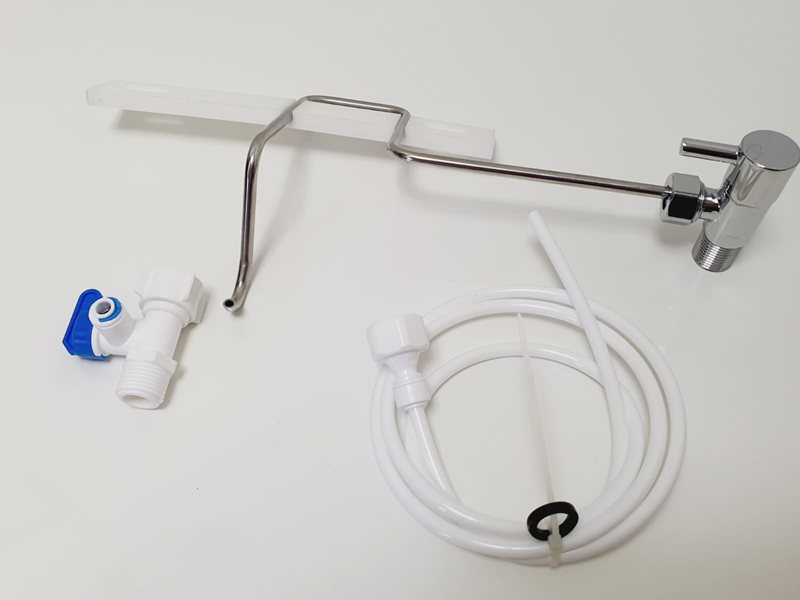 חלקים | תפס פלסטיק – בסיס להתקנה צינור נירוסטה ** מבריק אל חלד ברז איכותי עשוי פליז - ברז בתמונה ועל האריזה להמחשה בלבד צינור אספקת מים 1/4" באורך שניתן לקצר מחברי פלסטיק 1/2" מפצל איכותי עשוי פליז אטמים |